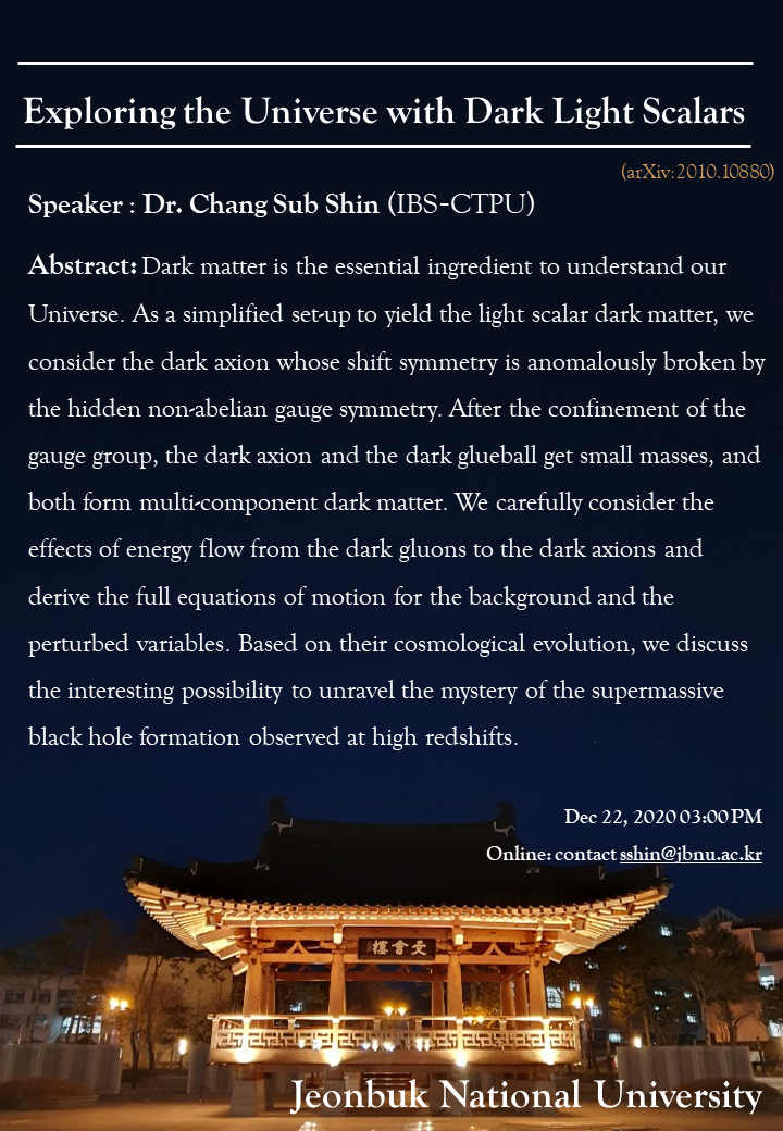 [신창섭 (IBS-CTPU) 박사/2020.12.22] Exploring the Universe with Dark Light Scalars