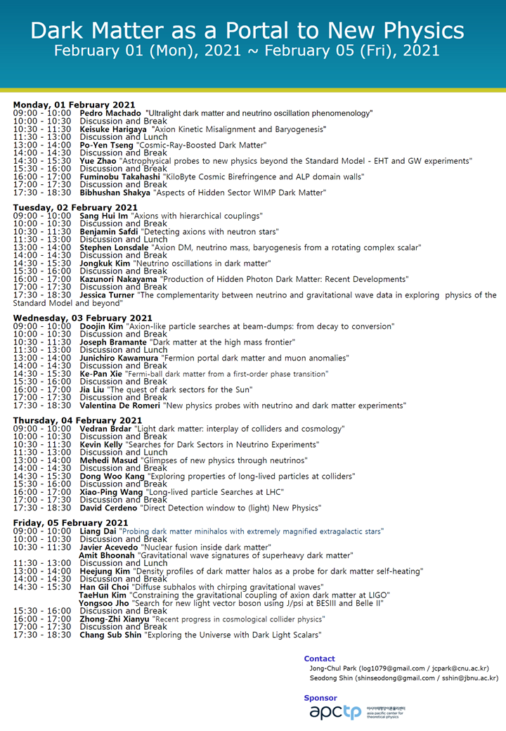 [February 01 (Mon), 2021 ~ February 05 (Fri), 2021]Dark Matter as a Portal to New Physics